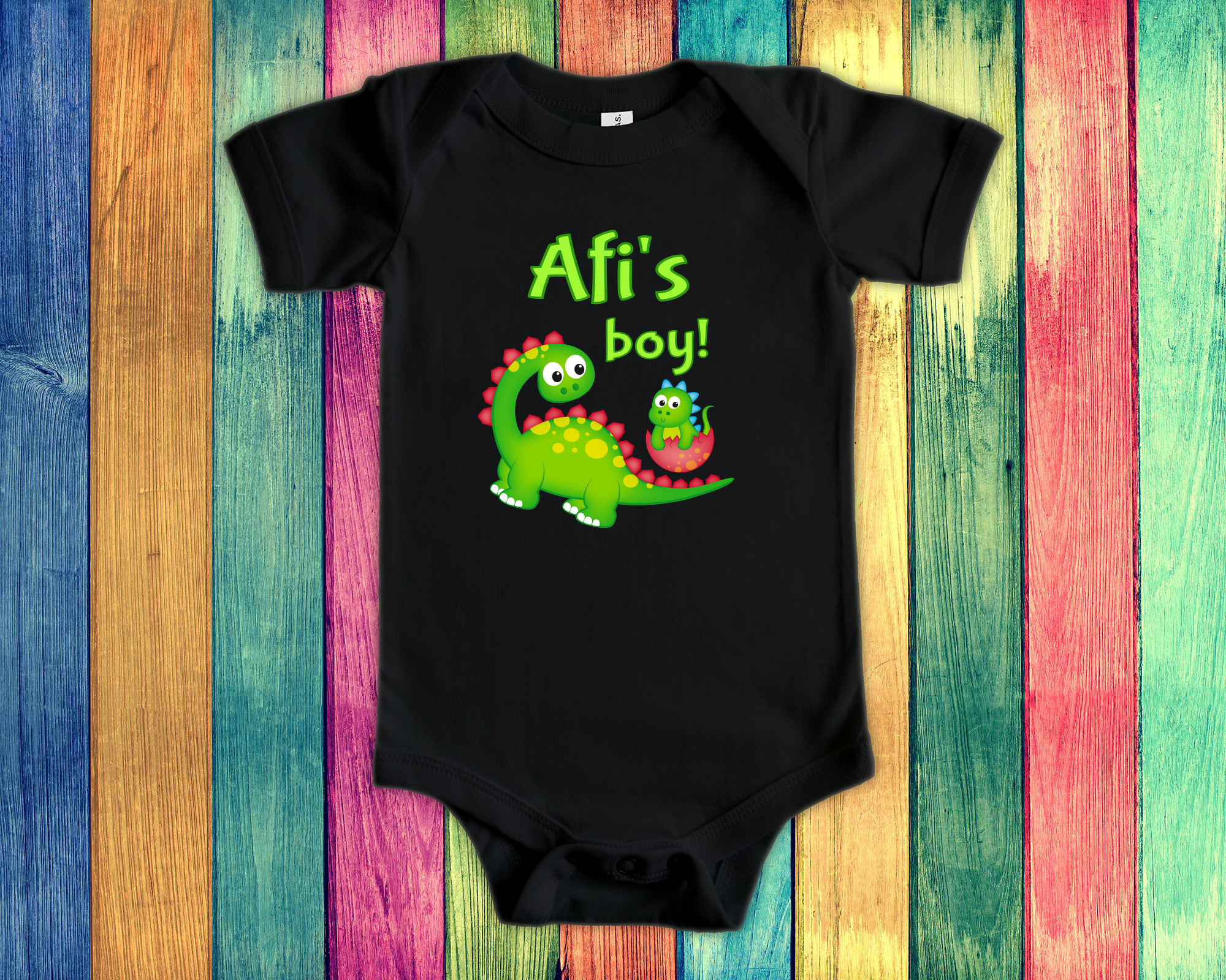 Afi's Boy Cute Grandpa Name Dinosaur Baby Bodysuit, Tshirt or Toddler Shirt for a Icelandic Nordic Grandfather Gift or Pregnancy Reveal