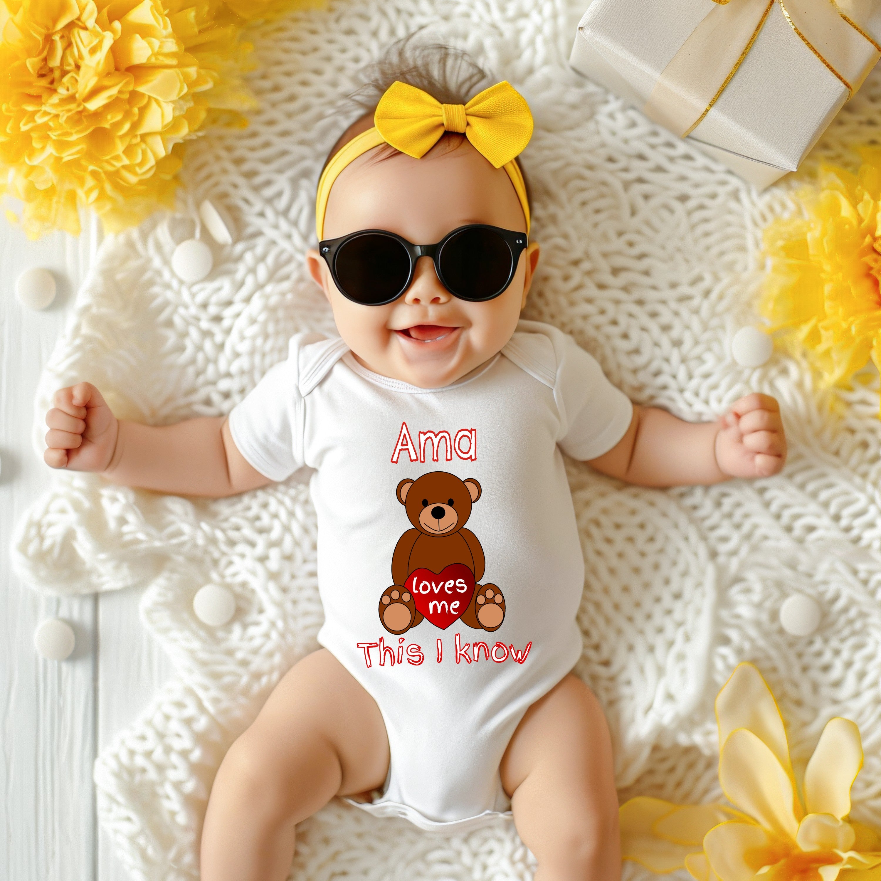 Ama Loves Me Cute Grandma Name Baby Bear Bodysuit, Tshirt or Toddler Shirt Special Grandmother Gift or Pregnancy Reveal Announcement