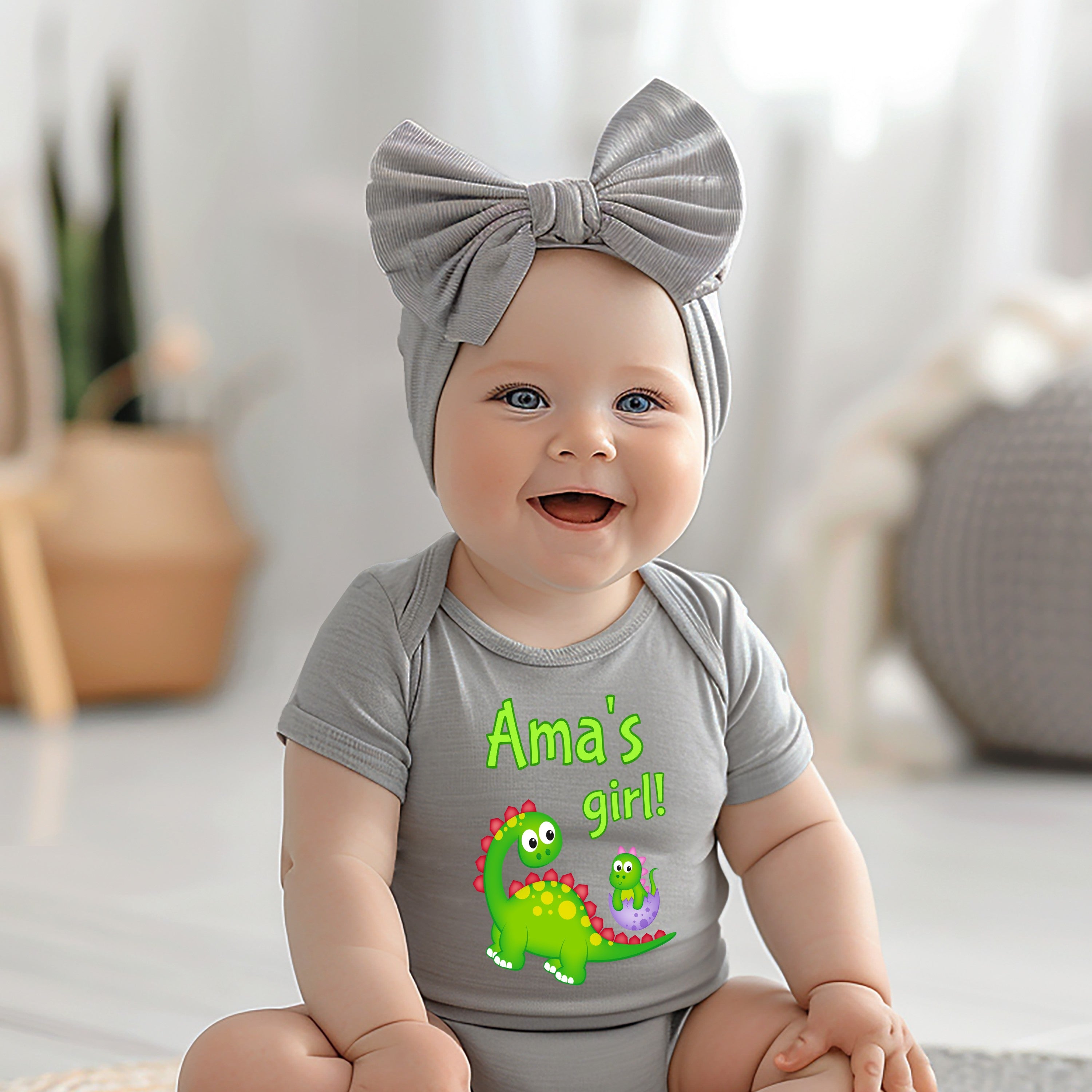 Ama's Girl Cute Grandma Name Dinosaur Baby Bodysuit, Tshirt or Toddler Shirt for a Special Grandmother Gift or Pregnancy Reveal Announcement