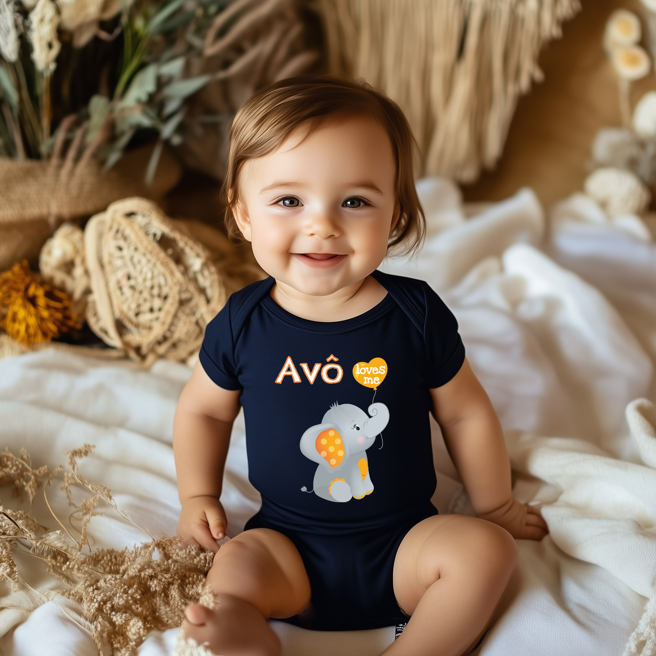 Avô Loves Me Cute Grandpa Name Elephant Baby Bodysuit,Tshirt or Toddler Shirt Brazilian Grandfather Gift or Pregnancy Reveal Announcement