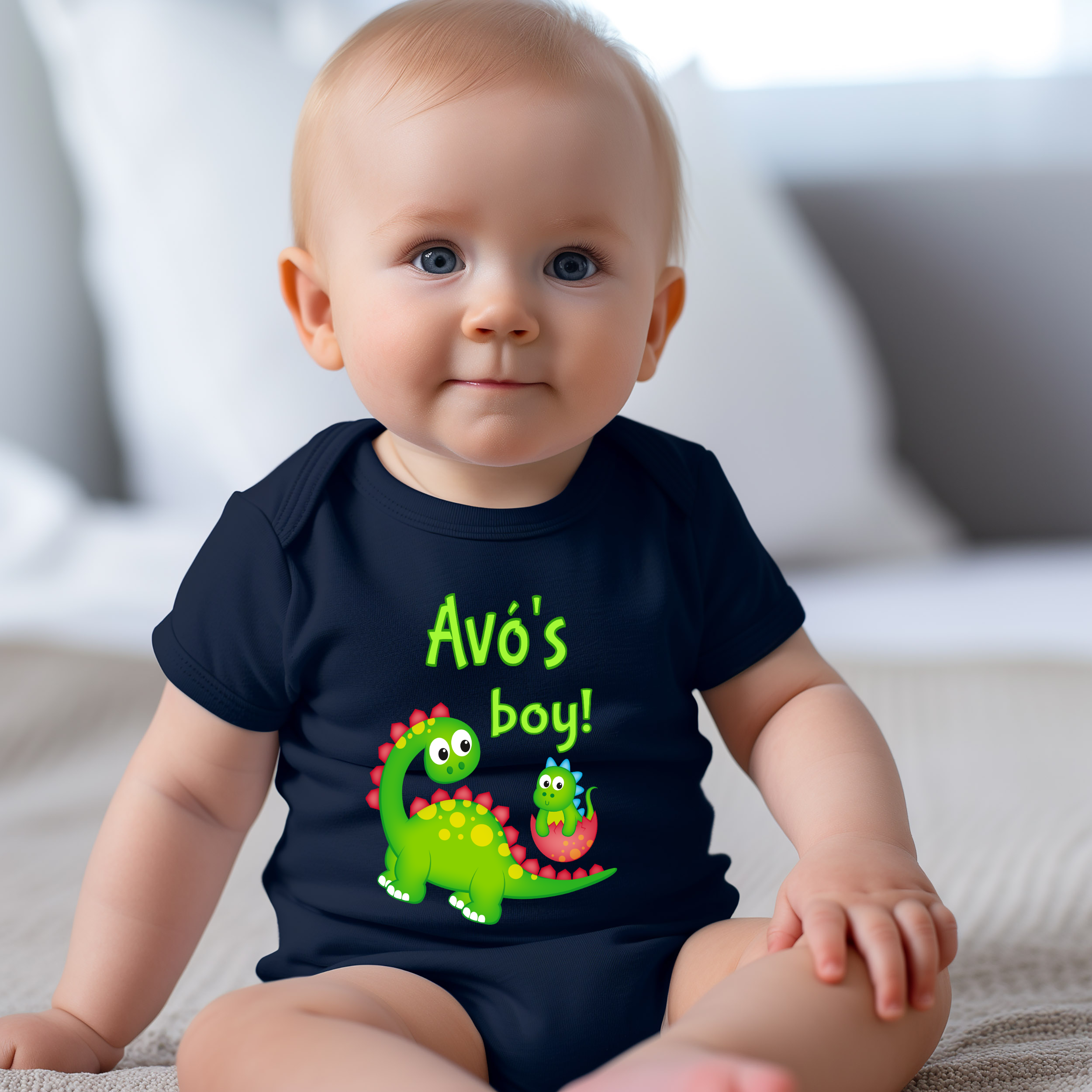 Avó's Boy Cute Grandma Name Dinosaur Baby Bodysuit, Tshirt or Toddler Shirt for a Portugal Portuguese Grandmother Gift or Pregnancy Reveal Announcement