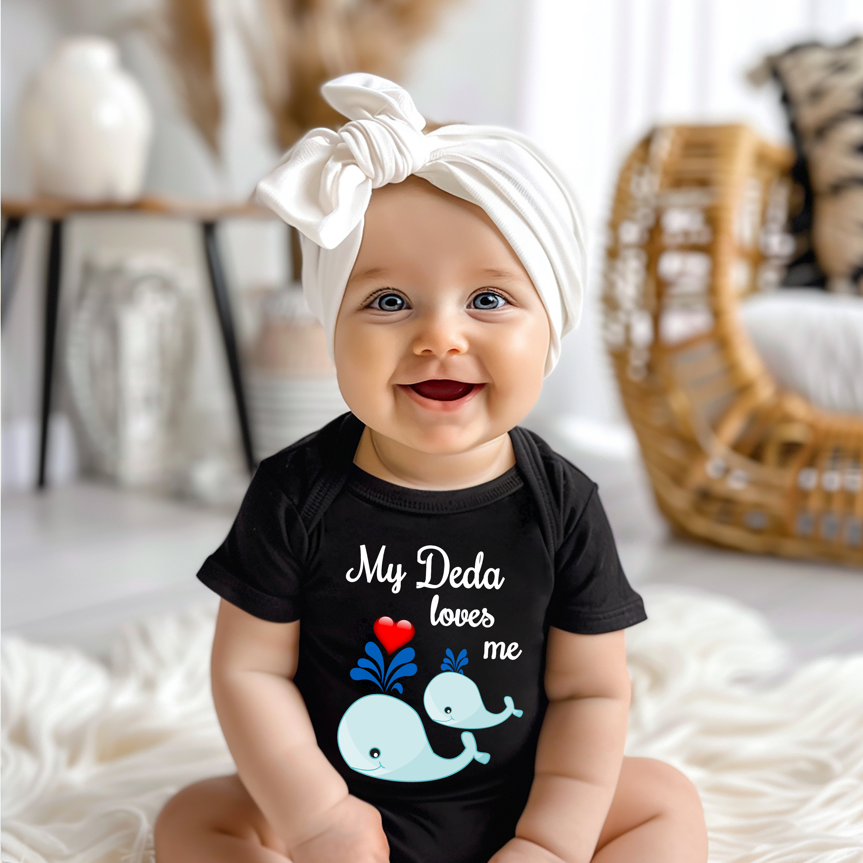 Deda Loves Me Cute Grandpa Name Whale Baby Bodysuit, Tshirt or Toddler Shirt Russia Russian Czech Grandfather Gift or Pregnancy Reveal Announcement