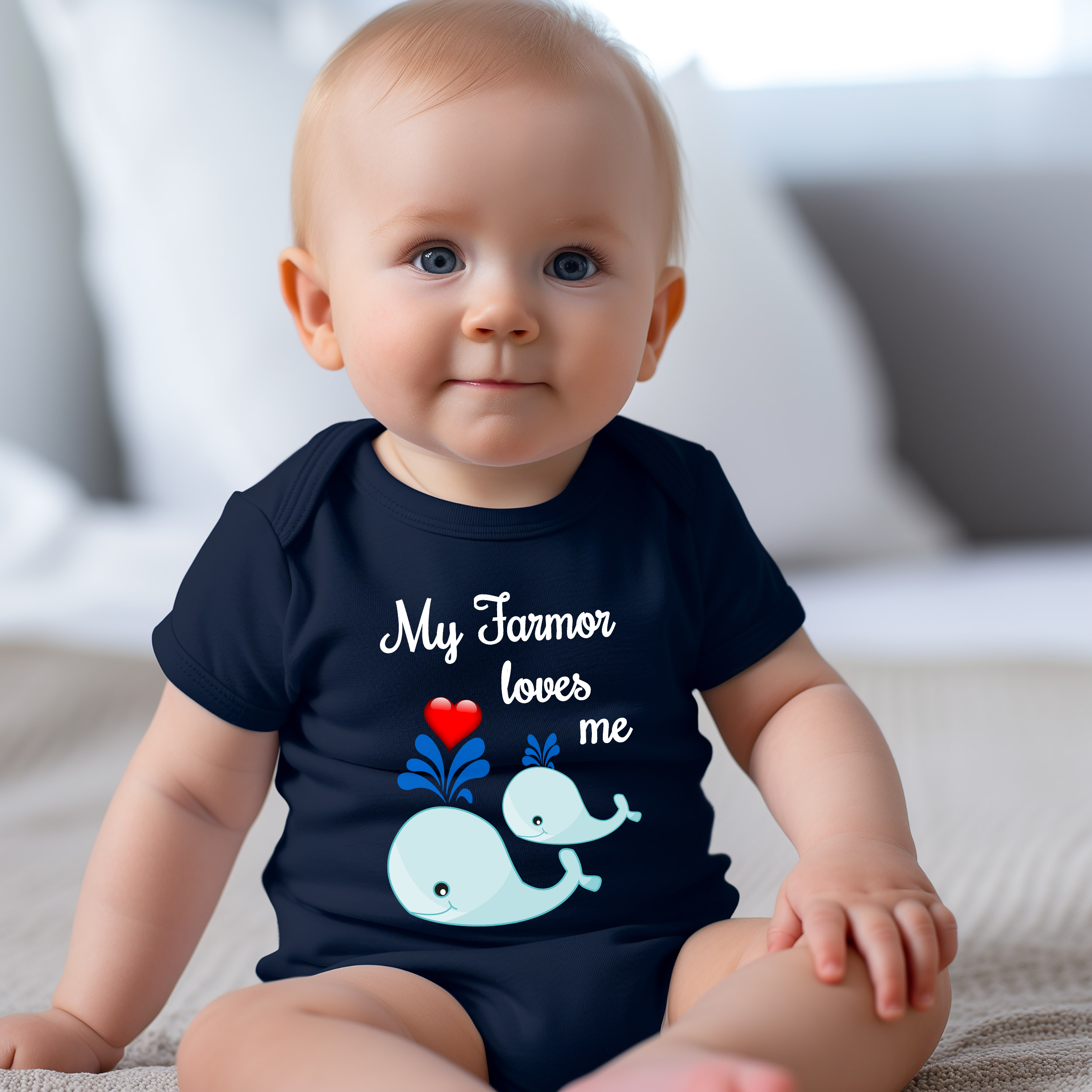 Farmor Loves Me Cute Whale Baby Bodysuit, Tshirt or Toddler Shirt Holland Norway Sweden Danish Norwegian Swedish Grandmother Gift or Pregnancy Reveal Announcement