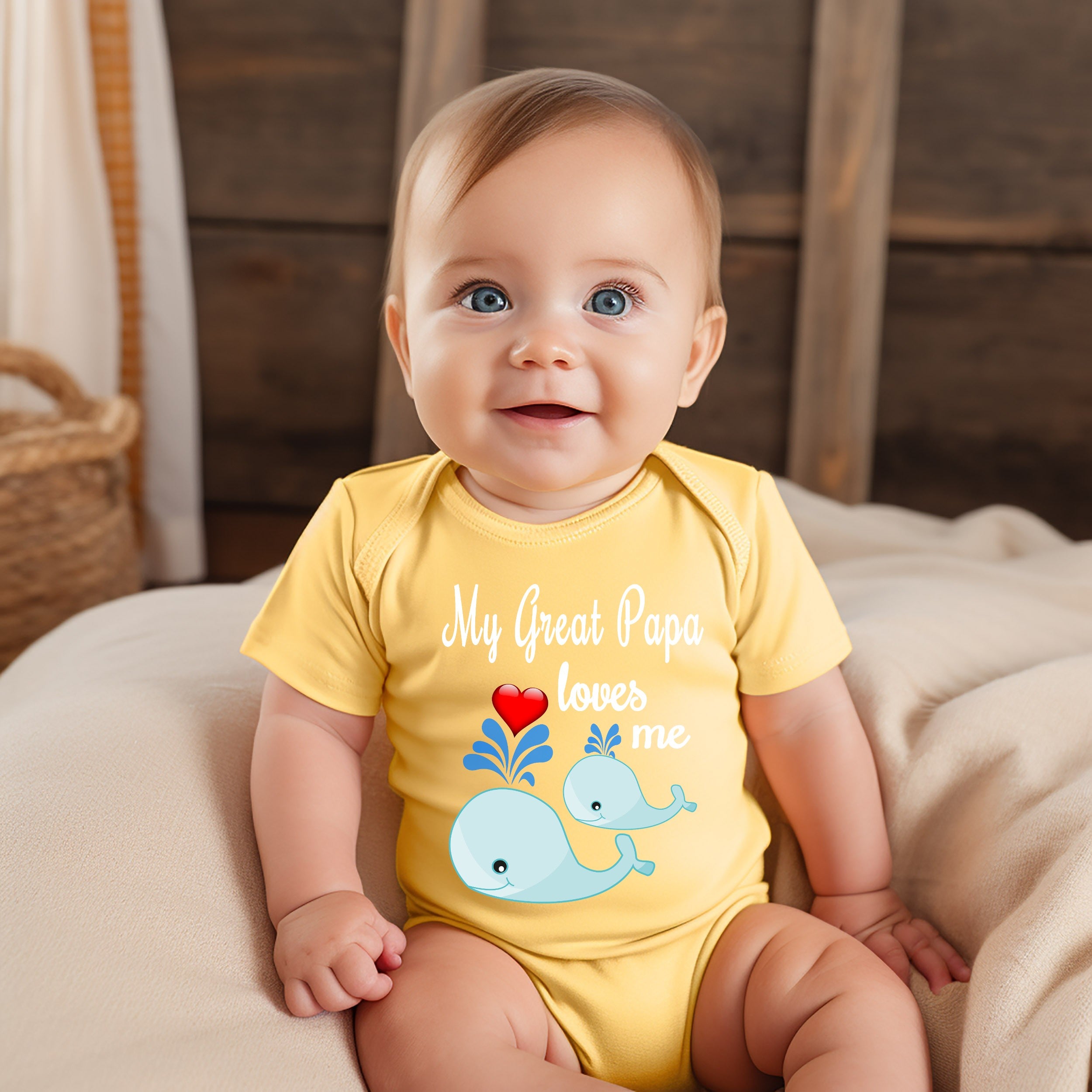Great Papa Loves Me Cute Great Grandpa Name Whale Baby Bodysuit, Tshirt or Toddler Shirt Special Great Grandfather Gift or Pregnancy Reveal Announcement