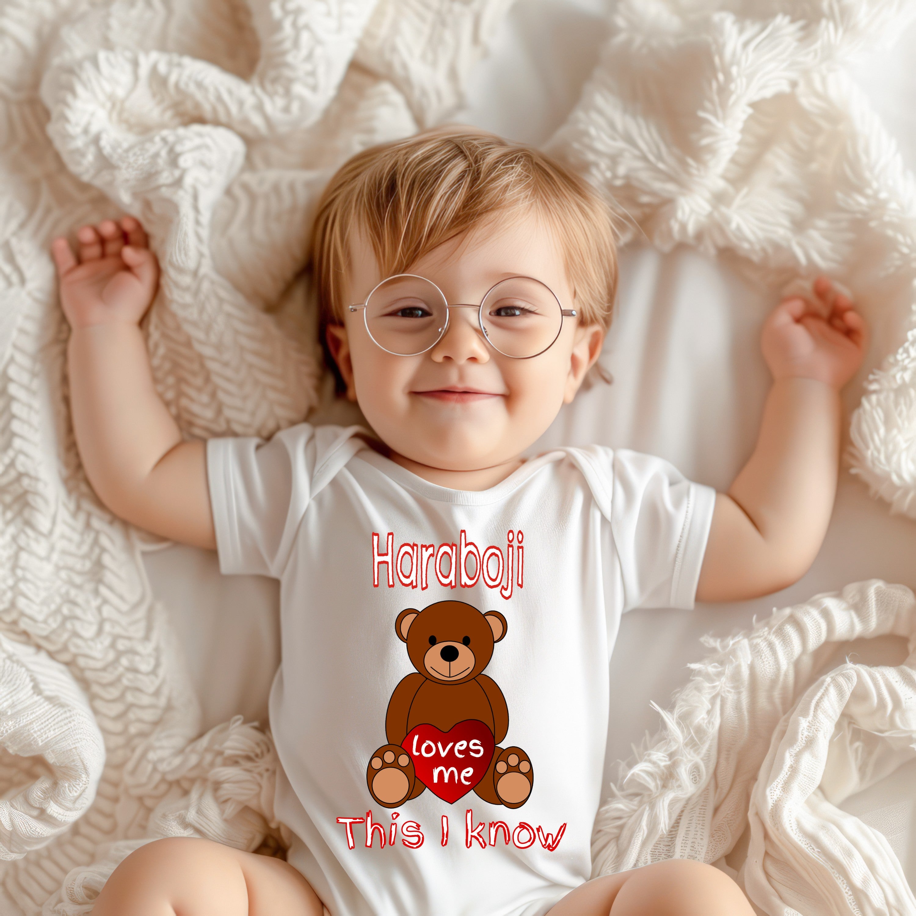 Haraboji Loves Me Cute Grandpa Name Bear Baby Bodysuit, Tshirt or Toddler Shirt Korea Korean Grandfather Gift or Pregnancy Reveal Announcement