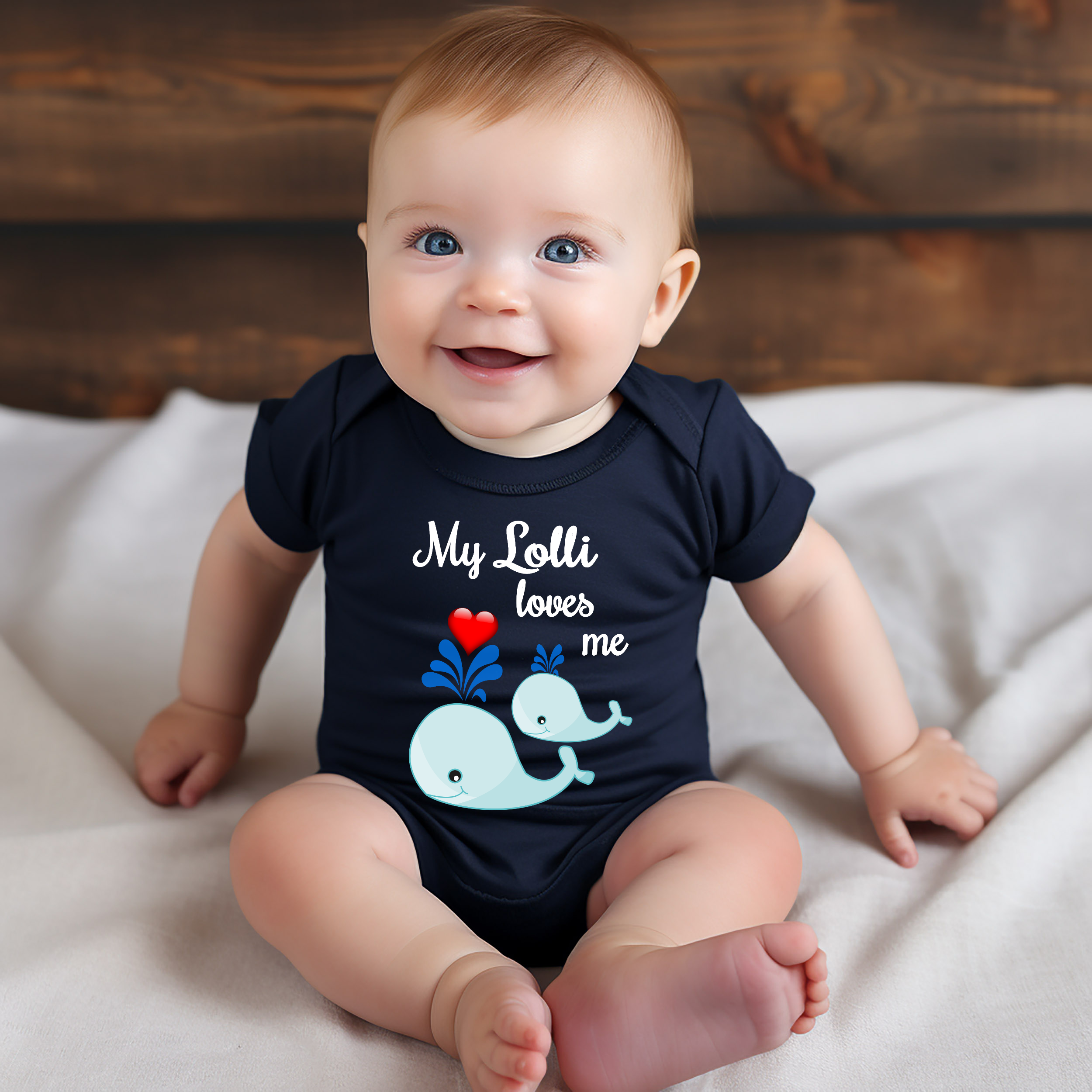 Lolli Loves Me Cute Grandma Whale Baby Bodysuit Unique Grandmother Gift for Granddaughter or Grandson or Pregnancy Announcement