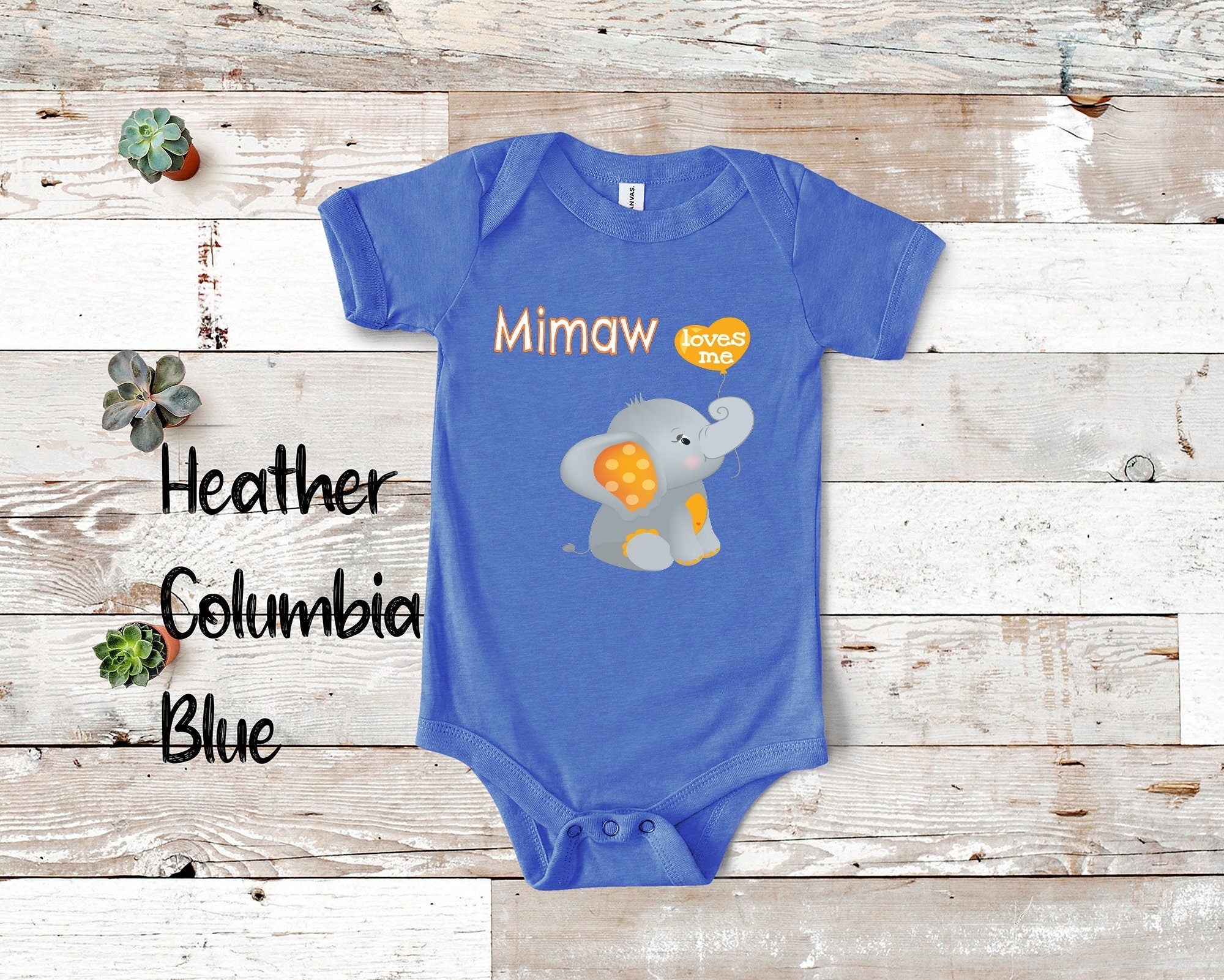 Mimaw Loves Me Cute Elephant Baby Bodysuit, Tshirt or Toddler Shirt Special Grandmother Gift or Pregnancy Reveal Announcement