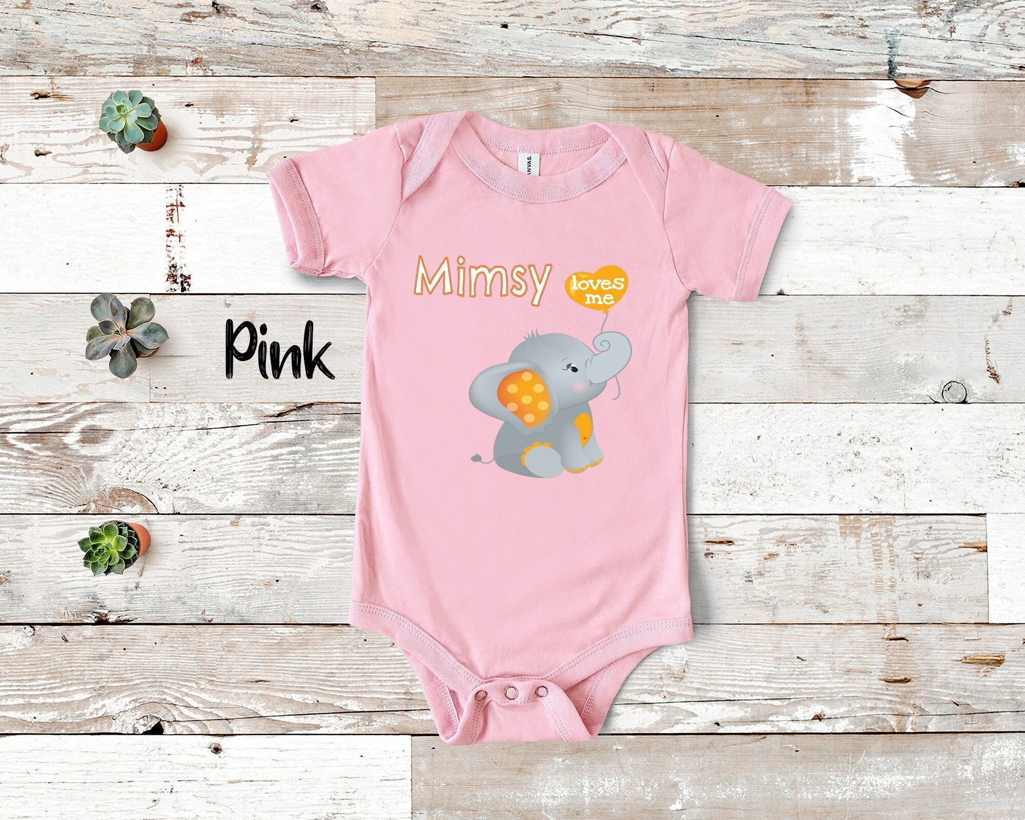 Mimsy Loves Me Cute Elephant Baby Bodysuit, Tshirt or Toddler Shirt Special Grandmother Gift or Pregnancy Reveal Announcement