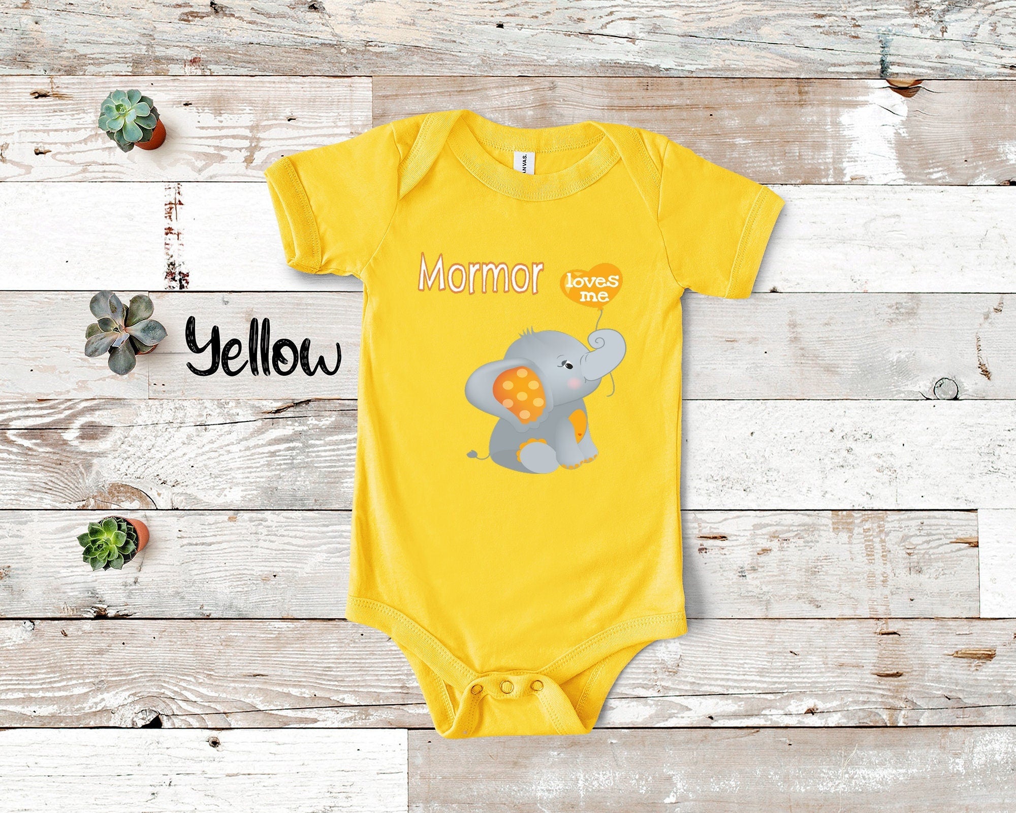 Mormor Loves Me Cute Grandma Name Elephant Baby Bodysuit, Tshirt or Toddler Shirt Norwegian or Swedish Grandmother Gift or Pregnancy Reveal