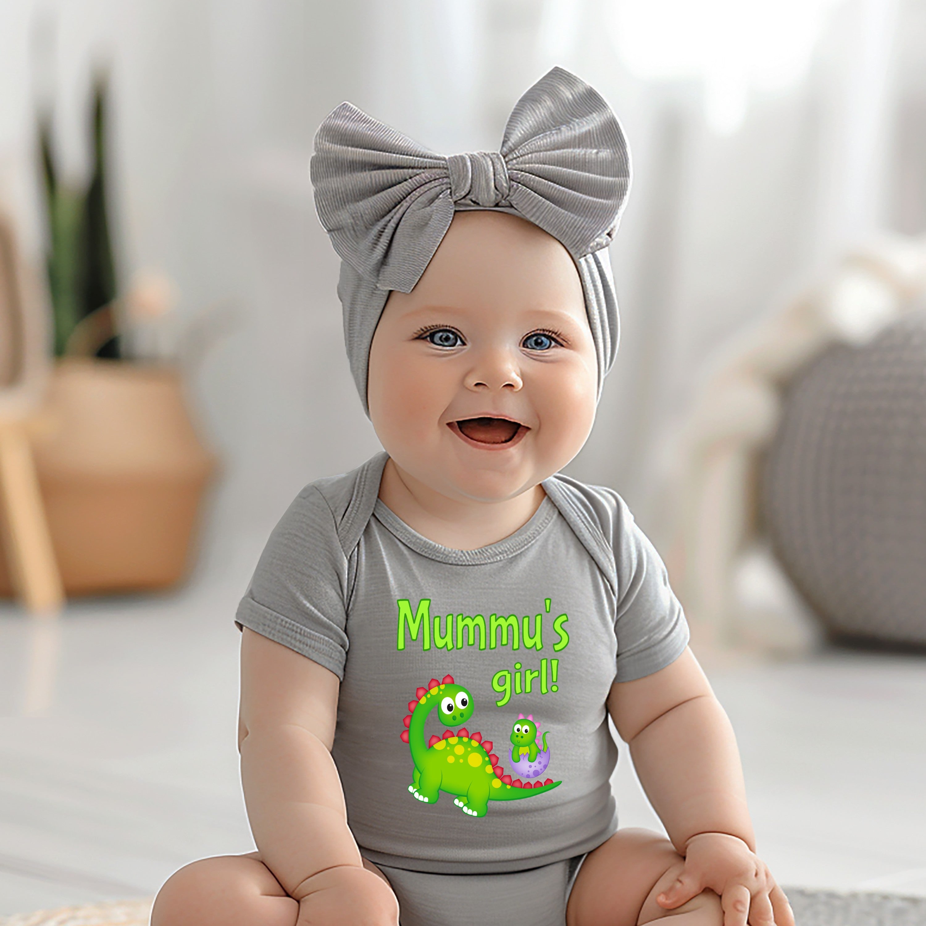 Mummu's Girl Cute Grandma Name Dinosaur Baby Bodysuit, Tshirt or Toddler Shirt for a Finland Finnish Grandmother Gift or Pregnancy Reveal Announcement