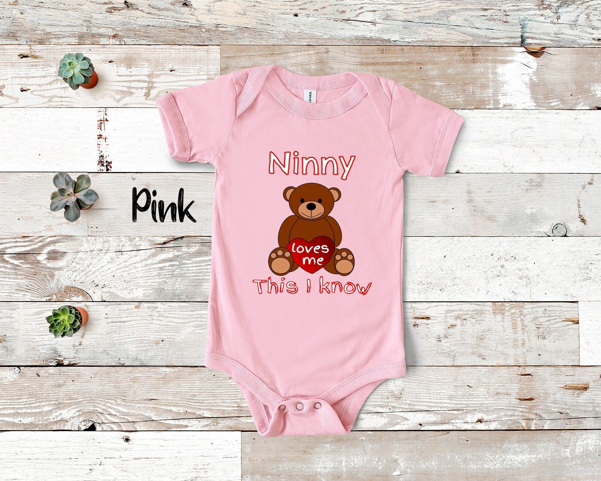 Ninny Loves Me Cute Grandma Baby Bodysuit, Tshirt or Toddler Shirt Special Grandmother Gift or Pregnancy Reveal Announcement