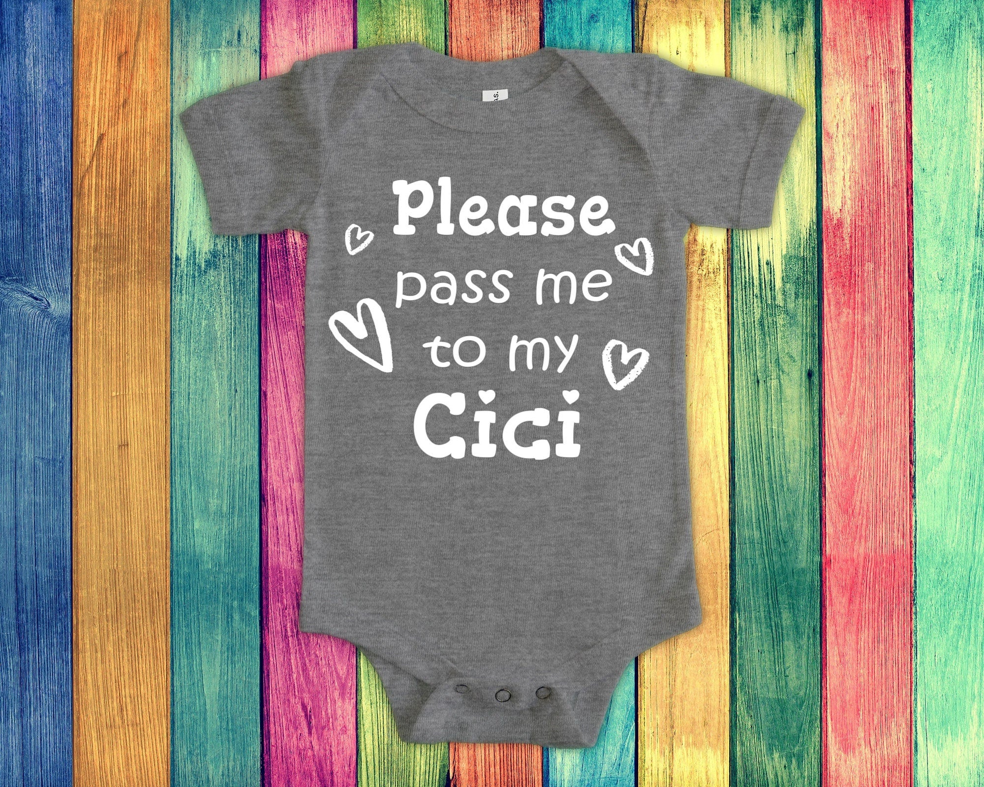 Pass Me To Cici Cute Bodysuit, Tshirt or Toddler Shirt Special Grandmother Gift or Pregnancy Announcement