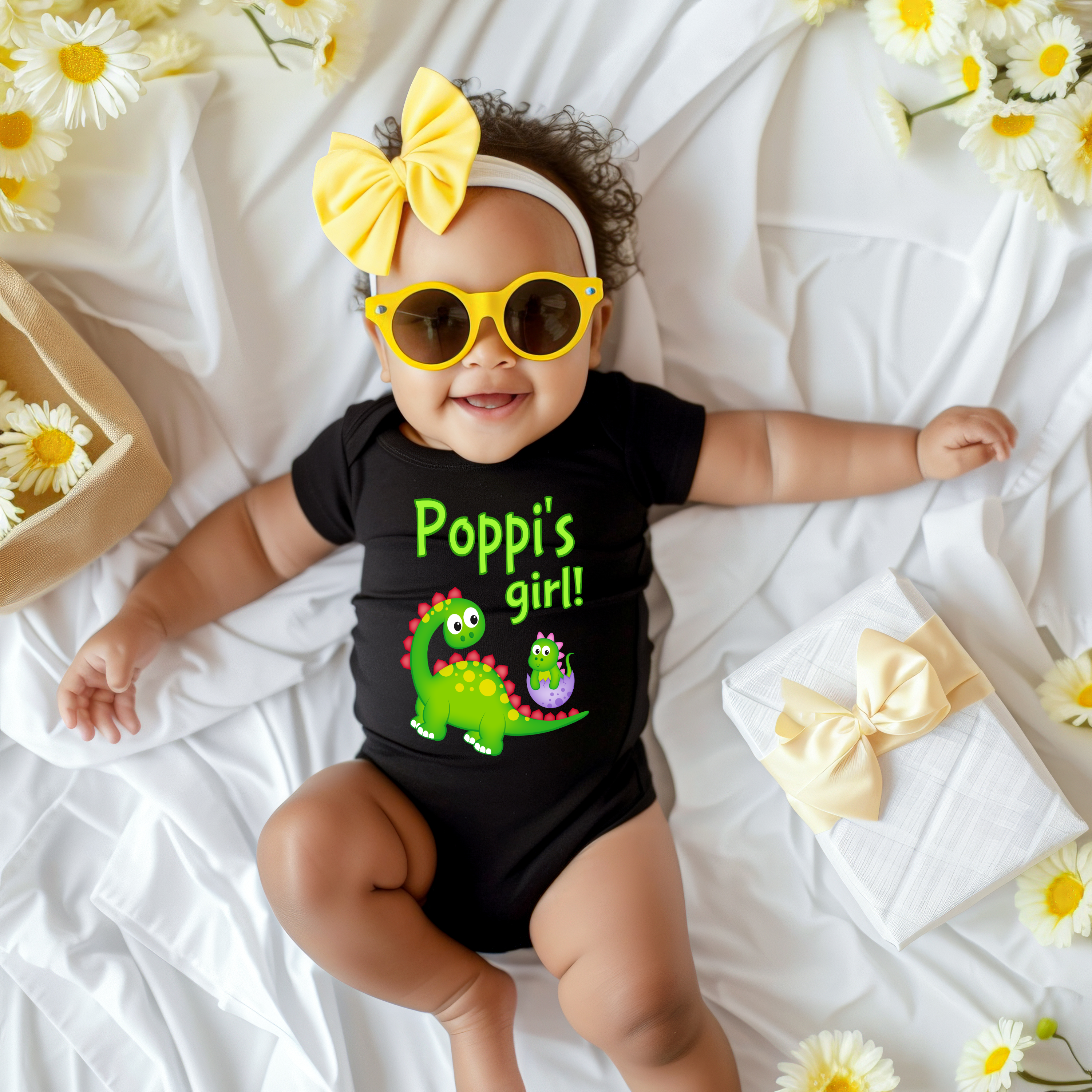 Poppi's Girl Cute Grandpa Name Dinosaur Baby Bodysuit, Tshirt or Toddler Shirt for a Special Grandfather Gift or Pregnancy Announcement